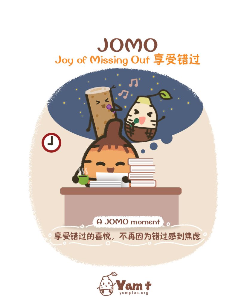 FOMO是现代文明病,英文是Fear of Missing Out,中文可译为「错失恐惧症」,是一种「害怕别人有,而我没有」的恐惧心理,担心一旦错过朋友的话题和活动,就会跟群体脱节,变成边缘人。这是社交媒体时代普遍的心理现象。