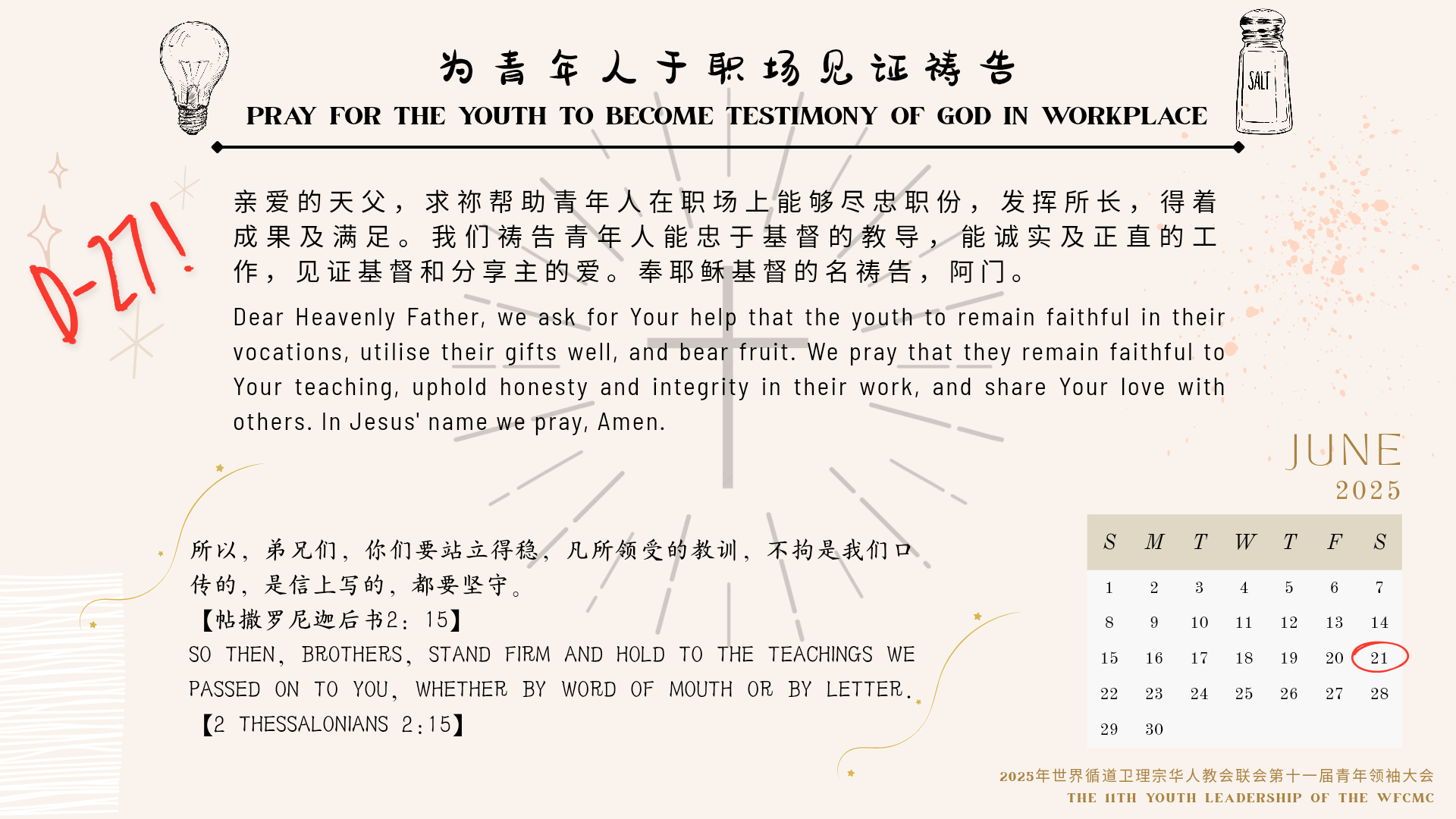 倒数27天 D-27 — 倒数27天 D-27 — 为青年人于职场见证祷告 PRAY FOR THE YOUTH TO BECOME TESTIMONY OF GOD IN WORKPLACE