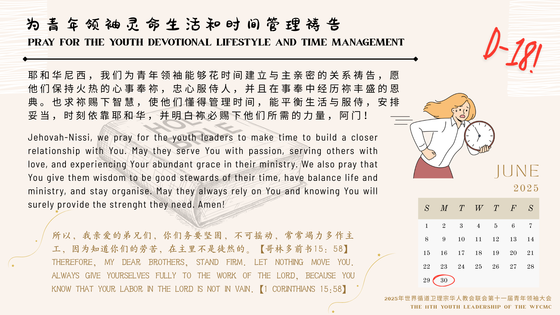 倒数18天 D-18 — 为青年领袖灵命生活和时间管理祷告 PRAY FOR THE YOUTH DEVOTIONAL LIFESTYLE AND TIME MANAGEMENT